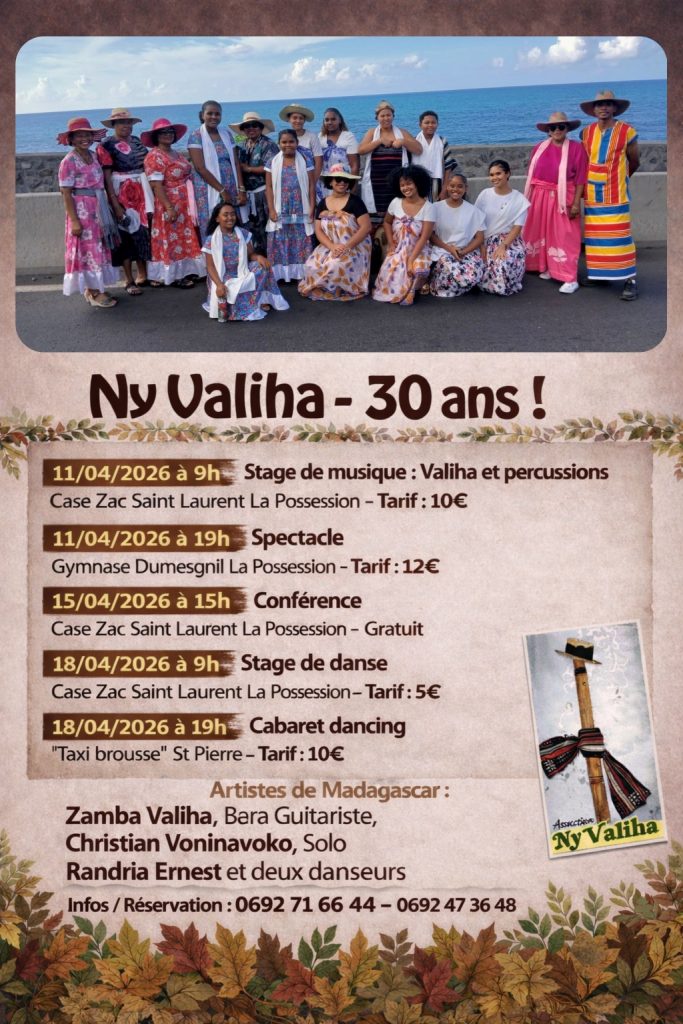 L’association Ny Valiha célèbre trois décennies de passion culturelle. Depuis 1996, cette structure fait rayonner les traditions malgaches à travers la danse et le chant. Pour son 30ème anniversaire, elle organise une semaine festive du 11 au 18 avril à La Possession. Cet événement renforce l’image de La Réunion comme terre de partage.