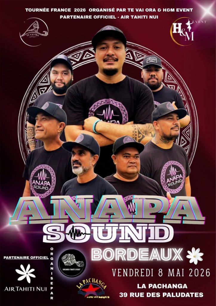 Tu dois te rendre sur la page de TE VAI ORA pour les détails de chaque soirée. Les réservations sont conseillées pour garantir ta place. Outre-mer Tourisme relaie également ces informations pour promouvoir le rayonnement de la Polynésie française. Prépare ton agenda pour ne pas manquer le passage d’ANAPA SOUND Tahiti près de chez toi.