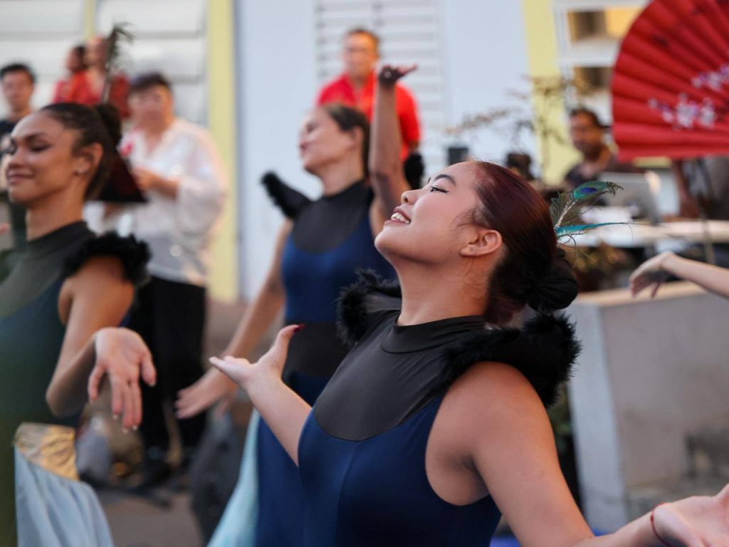 Outre-mer Tourisme te conseille d’observer les détails des tenues traditionnelles. Les rouges éclatants et les broderies dorées dominent l’album. Ces images soulignent la précision des danses du lion et les jeux de lumière de la soirée.
