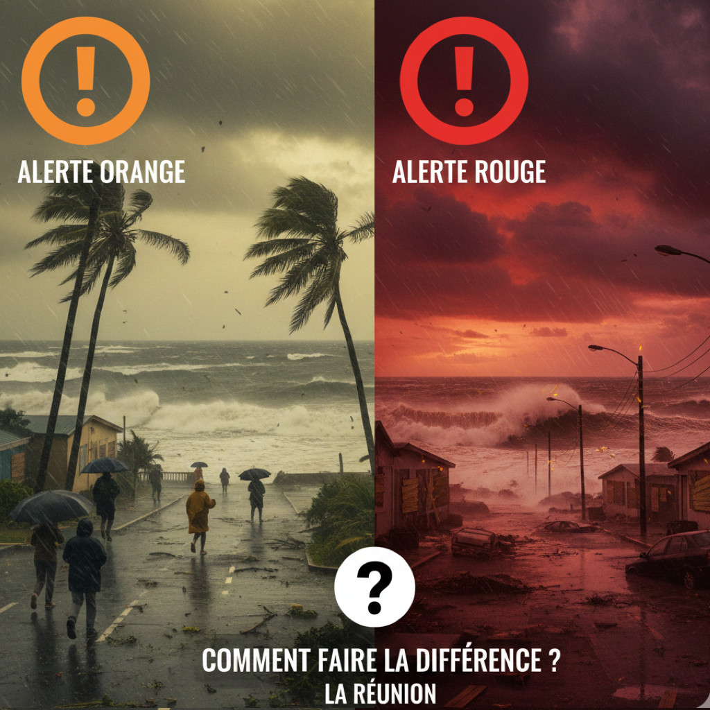 L’alerte orange signifie qu’un danger cyclonique menace La Réunion dans les 24 heures. Le système se rapproche et son impact devient certain. À ce stade, Tourisme Réunion t’informe que la vie économique continue, mais les établissements scolaires ferment souvent leurs portes.