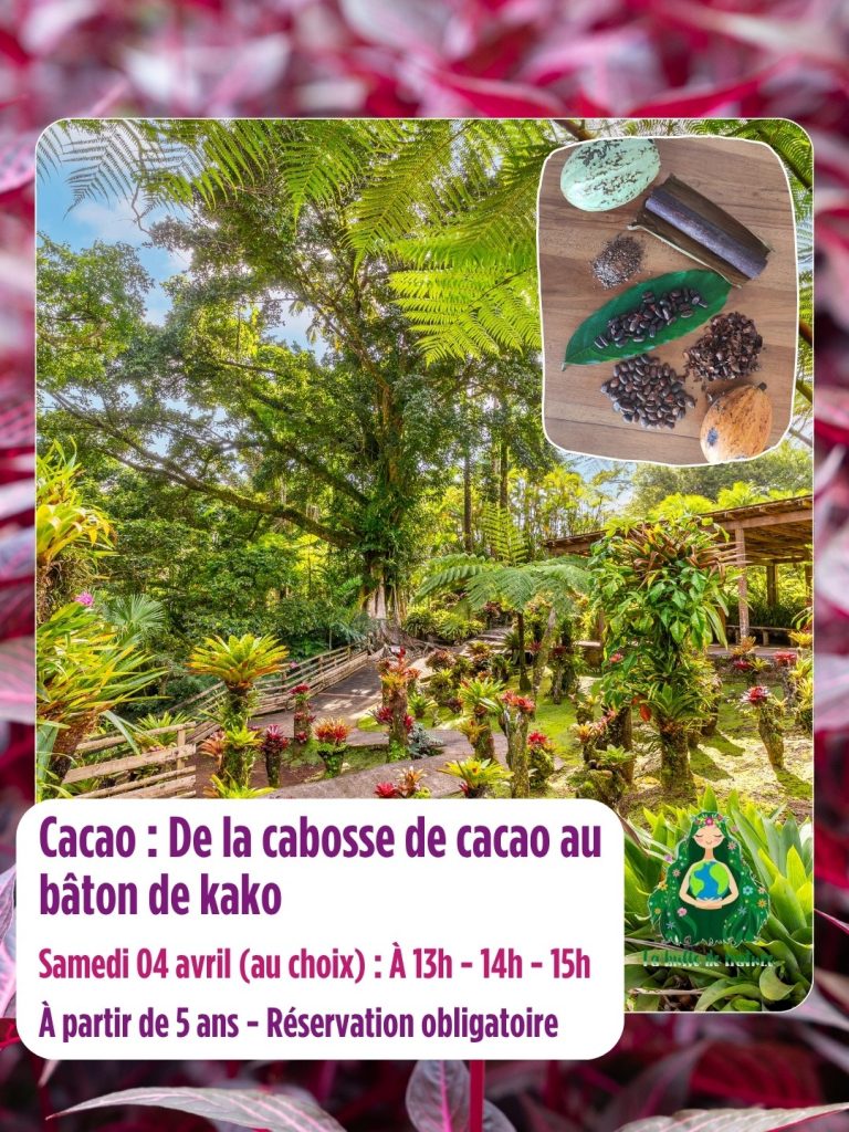 Le Jardin de Balata t’invite à une expérience sensorielle unique le samedi 4 avril. Tu vas découvrir la transformation du cacao lors d’un atelier exclusif en Martinique. Cet événement valorise le savoir-faire de l’Outre-mer à travers un parcours ludique et authentique.