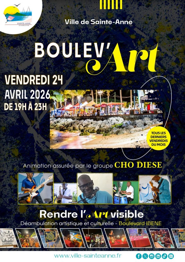 Le vendredi 24 avril 2026, le Boulevard Ibéné se transforme en une galerie d’art à ciel ouvert. De 19h à 23h, la Ville de Sainte-Anne en Guadeloupe invite les résidents et les visiteurs à découvrir la richesse de la création locale. Cette manifestation mensuelle célèbre l’identité culturelle de l’archipel à travers une déambulation nocturne unique.
