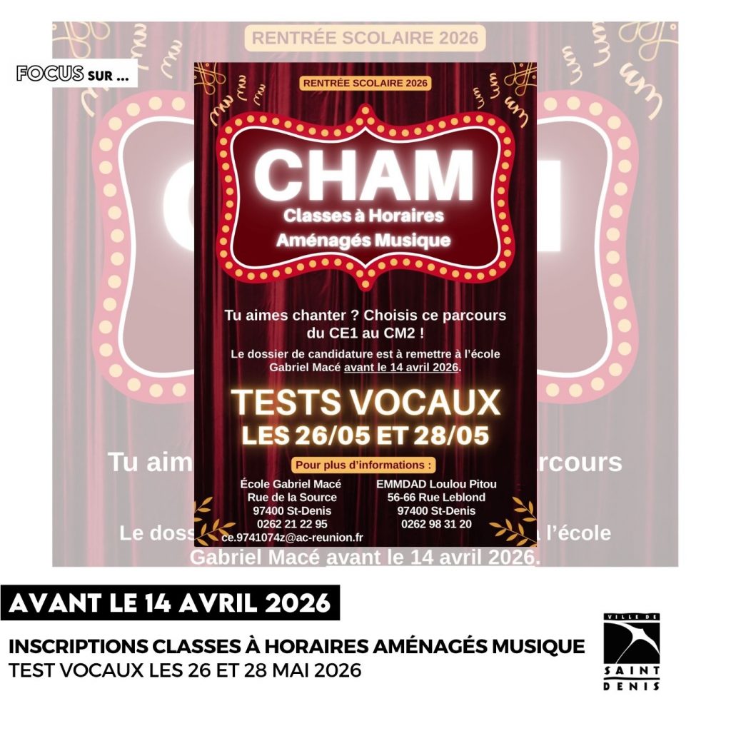 La Ville de Saint-Denis de La Réunion ouvre de nouvelles opportunités pour les jeunes talents. La classe CHAM recrute ses futurs élèves pour la rentrée prochaine. Ce dispositif permet aux enfants de concilier une scolarité classique avec une formation musicale intensive.