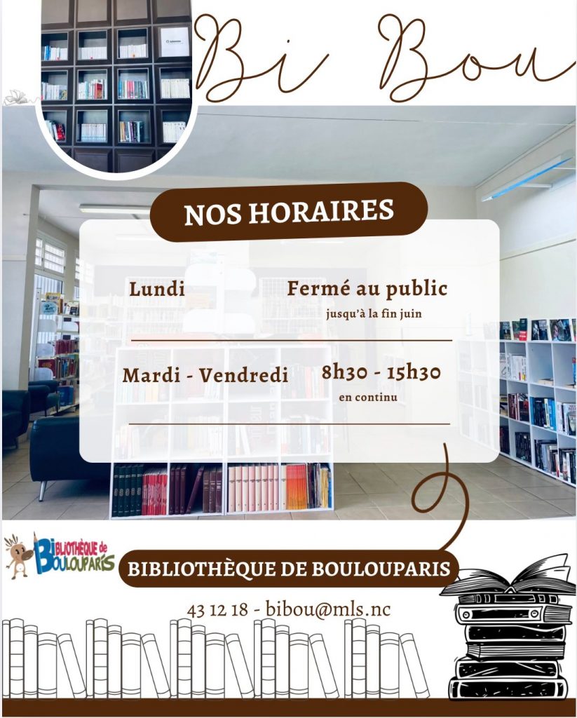 Quels sont les horaires de la Bibliothèque municipale de Boulouparis ?