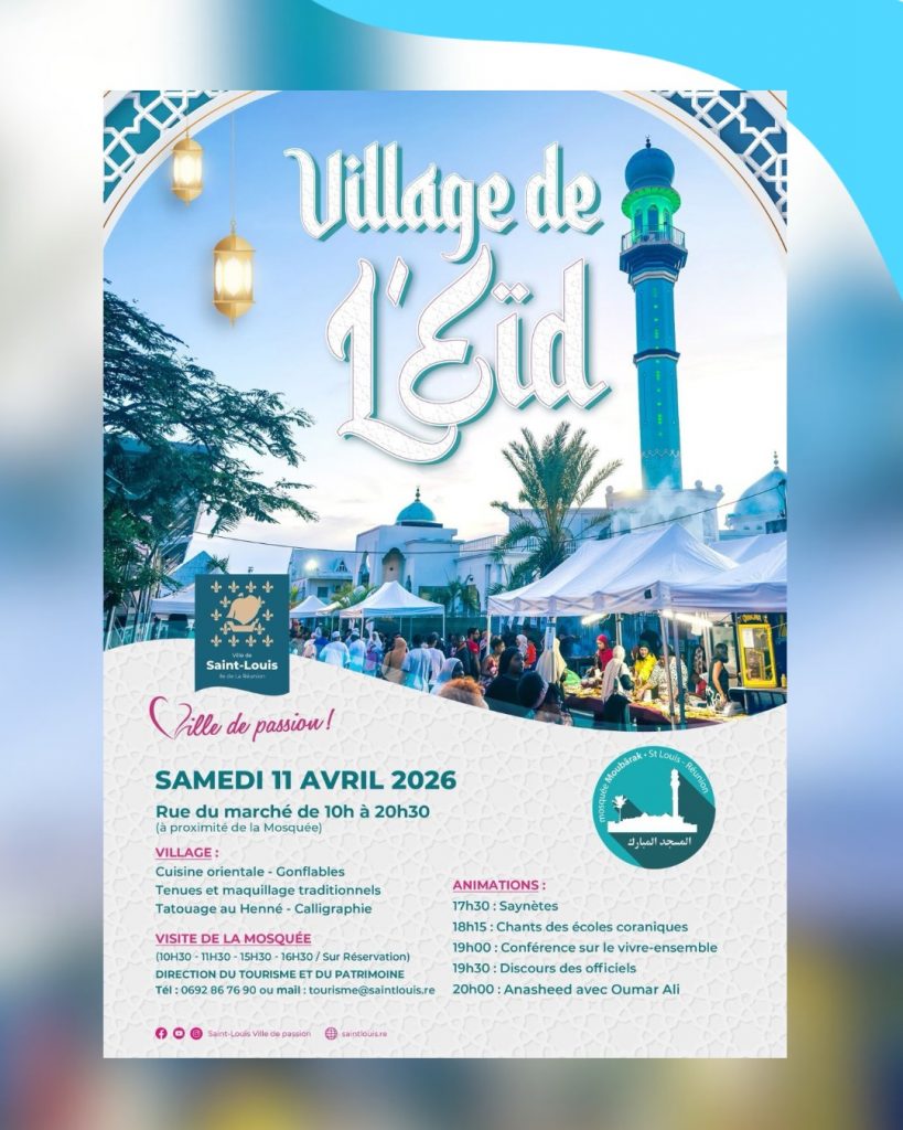 La ville de Saint-Louis accueille la 4ème édition du Village de l’Eïd le samedi 11 avril. De 10h00 à 20h30, l’association AISJ propose une immersion dans la culture musulmane. Cet événement favorise le vivre-ensemble et la curiosité culturelle. Il permet de découvrir une autre facette du patrimoine réunionnais.