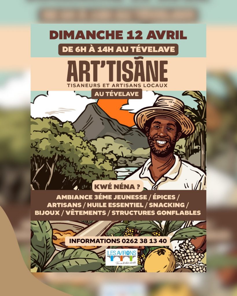 Le dimanche 12 avril, le village du Tévelave devient le théâtre d’un rassemblement authentique. De 6h00 à 14h00, Art’isane met en avant les tisaneurs et les artisans locaux. Tu y trouves des épices, des huiles essentielles et des objets faits main. Ce rendez-vous soutient l’économie de proximité et préserve les métiers anciens.