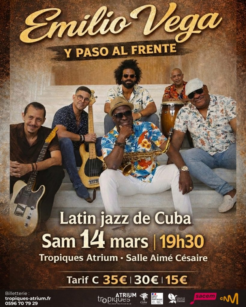 Le samedi 14 mars à 19h30, la Salle Aimé Césaire accueille un événement musical majeur. Emilio Vega, pianiste et compositeur cubain de renom, présente son groupe Paso al Frente. Ce concert promet une immersion dans un univers sonore où le jazz, la pop et le rock rencontrent les rythmes caribéens. Outre-mer Tourisme te conseille de réserver ta place pour cette performance unique en Martinique.