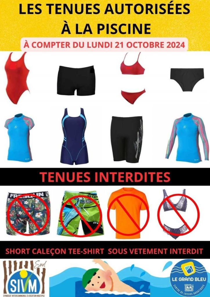 - Tenue obligatoire : Maillot de bain (pas de shorts).