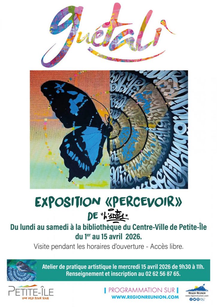 L’exposition propose une immersion active le mercredi 15 avril 2026. Un atelier de pratique artistique se tient de 9h30 à 11h. C’est une occasion unique de passer de l’observation à la création. Tu peux échanger directement avec l’univers de l’artiste. Cet atelier favorise la transmission des savoirs et la cohésion sociale à Petite-Île.