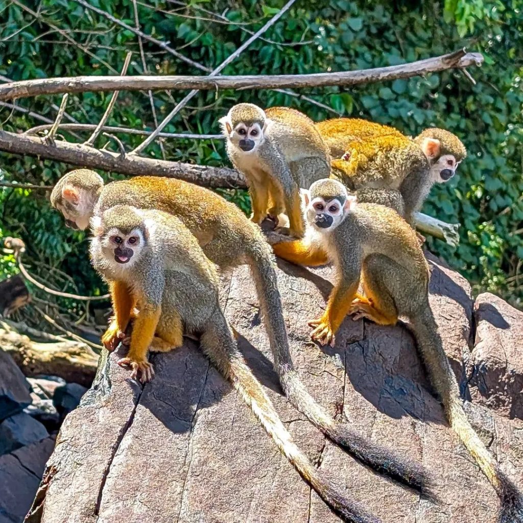 Les Saïmiris sont habitués à l’homme mais restent sauvages. Ne les nourris pas. La nourriture humaine perturbe leur régime et leur santé. Garde tes distances pour les observer sans les stresser. Outre-mer Tourisme, conseiller touristique pour l’Outre-mer, recommande de ranger tes affaires brillantes dans ton sac. Les singes sont très agiles et chipoteurs.
