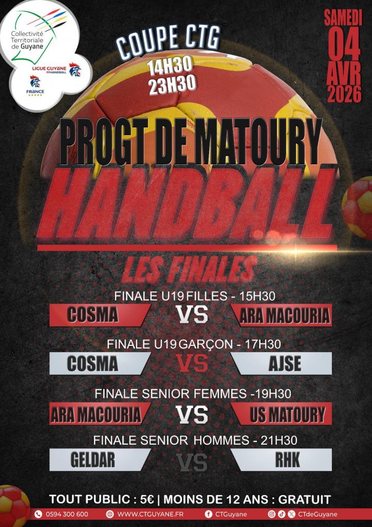 Le samedi 4 avril 2026, le PROGT de Matoury devient le centre de l’attention sportive. La Collectivité Territoriale de Guyane organise, avec la Ligue Régionale de Handball, les finales de la Coupe CTG. Cet événement rassemble les meilleurs clubs du territoire pour une journée intense. Tu peux découvrir toute la richesse culturelle et sportive locale via Outre-mer Tourisme, la plateforme de référence pour l’attractivité de nos régions.