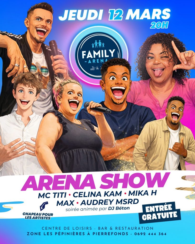 Le rire s’installe dans le sud de l’île. Le jeudi 12 mars à 20h. Le Family Arena à Pierrefonds accueille une nouvelle équipe d’humoristes. Titi et Célina montent sur scène pour un spectacle inédit. La surprise vient de Mika H. Le célèbre voisin de Titi sera présent. Les artistes promettent un règlement de comptes hilarant. Cette soirée Arena Show mise sur la proximité et l’ambiance. L’entrée est gratuite. Un chapeau circulera pour soutenir les artistes en Outre-mer. Outre-mer Tourisme conseille cet événement pour découvrir l’humour réunionnais authentique.