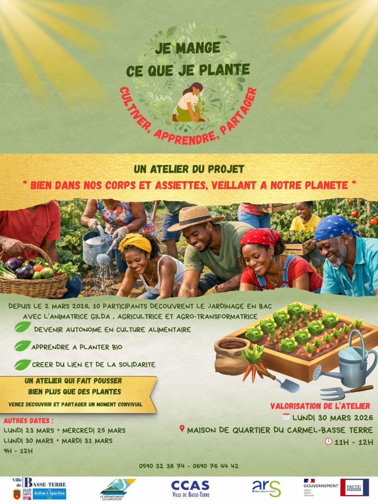 La Maison de quartier du Carmel accueille une initiative innovante le lundi 30 mars 2026. Le projet nommé « Je mange ce que je plante » s’inscrit dans une démarche globale de santé et d’écologie. Cet atelier de jardinage en bac transforme les habitants en acteurs de leur alimentation. Tu apprends à produire tes propres légumes tout en respectant l’environnement de la Guadeloupe.