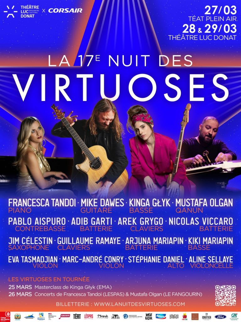 Le Théâtre Luc Donat accueille un événement exceptionnel les 28 et 29 mars 2026. La 17ème édition de la Nuit des Virtuoses transforme La Ville du Tampon en capitale mondiale de la musique. Ce festival rassemble des artistes internationaux et des talents de La Réunion. Les spectateurs découvrent des performances de jazz, de guitare et de musiques du monde. Cette rencontre artistique unique renforce le prestige culturel de notre région d’Outre-mer.