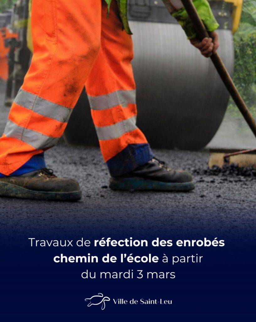 La Ville de Saint-Leu lance d’importants travaux de réfection des enrobés sur le chemin de l’école. Le chantier débute le mardi 3 mars et s’étalera sur une période de 4 semaines. Ces aménagements garantissent une meilleure sécurité pour les riverains et les usagers de la route à La Réunion. Cette action s’inscrit dans une volonté globale d’amélioration des infrastructures en Outre-mer.