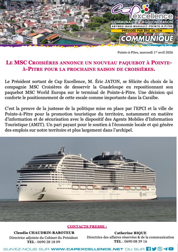 Cet événement génère des flux de visiteurs importants. Les passagers consomment sur place. Ils visitent les sites naturels. Ils découvrent l’artisanat local. La Guadeloupe renforce ainsi sa réputation de terre d’excellence. La sécurité et la qualité de l’accueil restent les piliers de cette réussite. Les efforts de la Communauté d’Agglomération Cap Excellence portent leurs fruits.