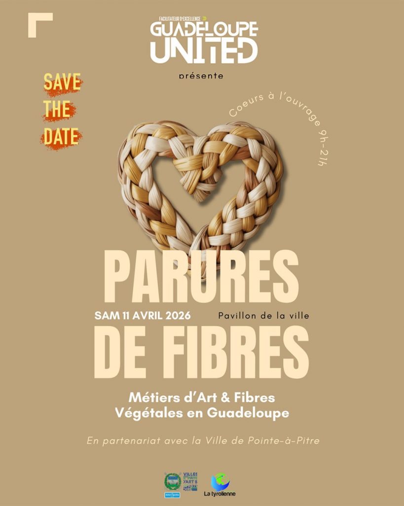 Le samedi 11 avril 2026, le Pavillon de la Ville à Pointe-à-Pitre devient le centre de la création végétale. L’association Guadeloupe United organise l’événement Parures de Fibres sous le thème Cœurs à l’ouvrage. Cette journée célèbre les Journées Européennes des Métiers d’Art. Tu y découvriras comment la matière brute se transforme en œuvre d’art. Le programme s’étend de 9h00 à 21h00 pour offrir une immersion totale dans le savoir-faire local.