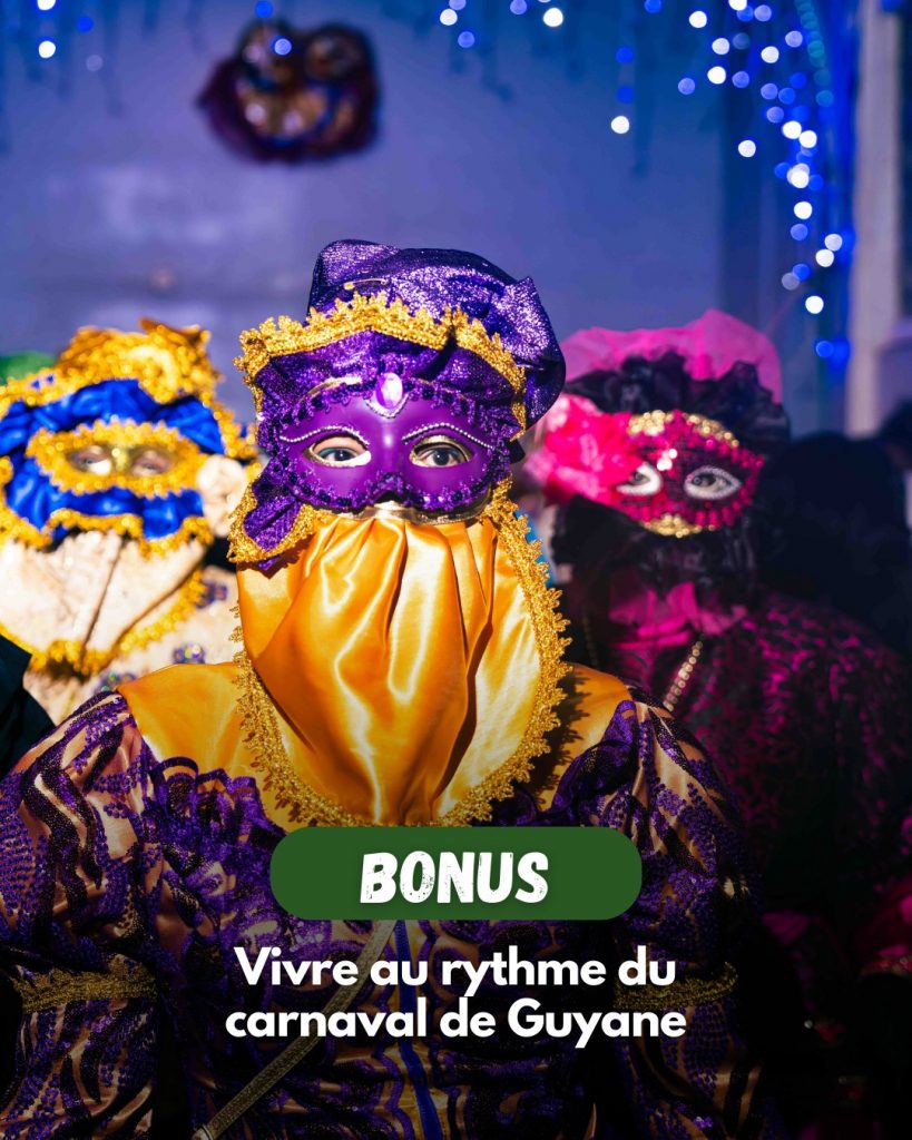 Le Carnaval de Guyane est le plus long du monde. Il se déroule précisément pendant la saison des pluies. Tu danses au rythme des orchestres de rues. Tu découvres le personnage emblématique du Touloulou dans les dancings comme « Chez Nana ». C’est une fête populaire authentique. Outre-mer Tourisme conseille de réserver tes places tôt pour vivre cette ferveur locale. (Images Tourisme Guyane)