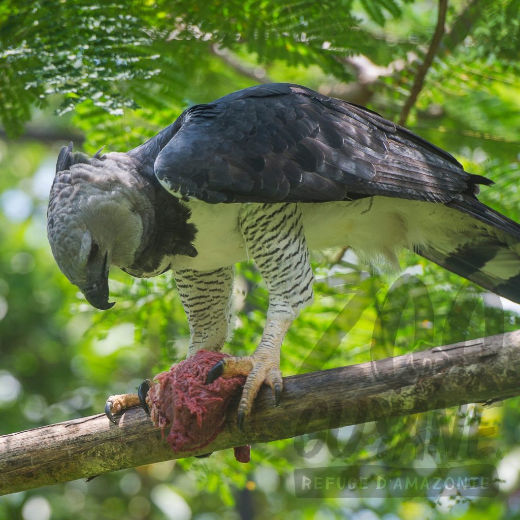 Le Zoo-refuge de Guyane accueille un pensionnaire exceptionnel. Géro, une Harpie féroce, incarne la puissance sauvage de l’Amazonie. Ce rapace impressionne par ses dimensions hors normes. Il mesure jusqu’à 1 mètre de haut. Son envergure frôle les 2 mètres. Il pèse entre 5 et 9 kg. Cette espèce vit jusqu’à 40 ans en milieu naturel ou protégé. La Harpie féroce reste le plus grand et puissant rapace de la forêt tropicale. Elle figure parmi les plus grandes espèces d’aigles au monde. (C. Image : Zoo-refuge de Guyane)