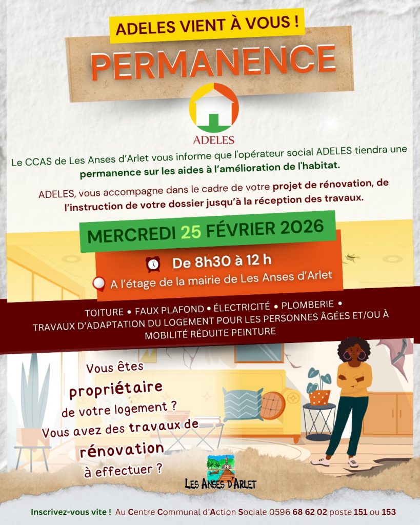 Améliorer ton logement devient plus simple. Le CCAS de la Ville de Les Anses d’Arlet s’associe à l’association ADELES. Cette collaboration vise à accompagner les propriétaires dans leurs projets de travaux. Si tu possèdes un bien en Martinique, cette initiative concerne ton confort et la valorisation de ton patrimoine.