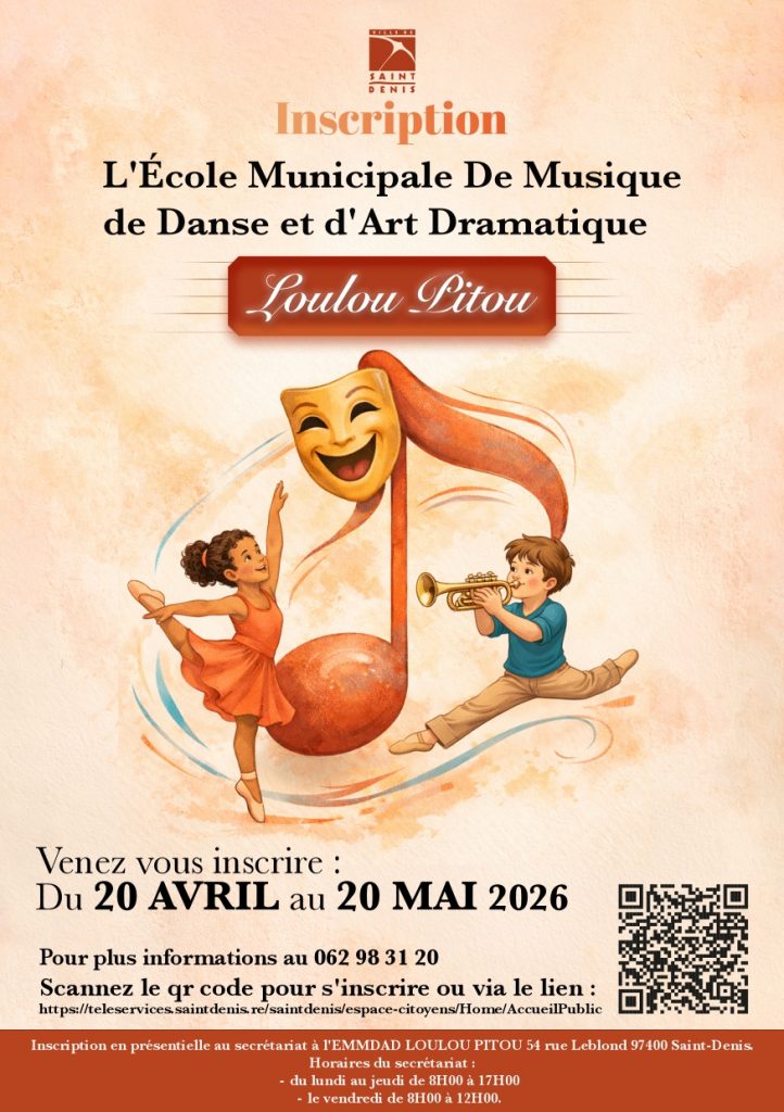 L’ouverture des inscriptions à l’École Municipale de Musique, de Danse et d’Art Dramatique Loulou Pitou approche. Cet établissement emblématique de la Ville de Saint-Denis de La Réunion prépare sa rentrée 2026. Il offre une opportunité unique de former les talents de demain au cœur de l’Outre-mer. Tu peux t’inscrire ou inscrire tes enfants pour explorer diverses disciplines artistiques.