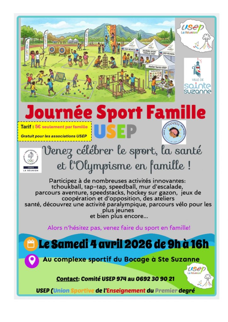 La Ville de Sainte-Suzanne s’anime pour une journée exceptionnelle dédiée au bien-être et à la cohésion. Le samedi 4 avril 2026 de 9h à 16h le Complexe sportif du Bocage accueille les familles réunionnaises. Cet événement gratuit permet de découvrir des disciplines variées dans un cadre verdoyant. Tu profites d’un moment privilégié avec tes proches tout en prenant soin de ta santé.