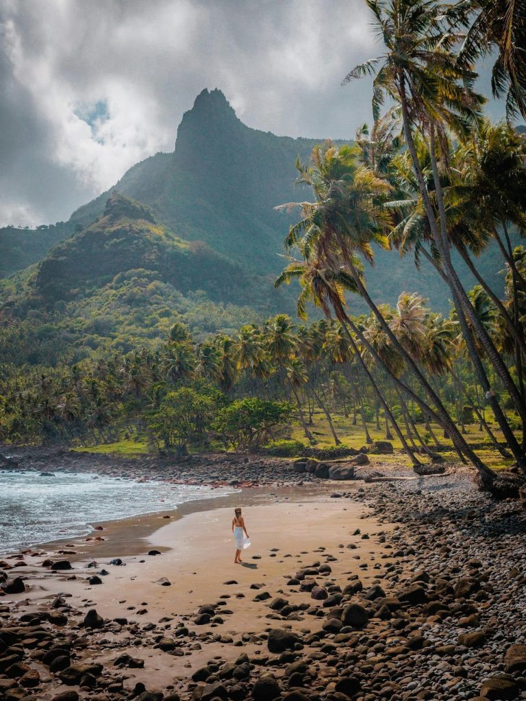 Nuku Hiva représente la plus grande île de l’archipel des Marquises. Ce territoire se distingue par ses paysages accidentés et ses montagnes impressionnantes. Tu découvres des falaises escarpées qui plongent dans l’océan Pacifique. Des forêts épaisses recouvrent les sommets volcaniques. Des plages de sable noir bordent le littoral. L’exploration de l’île offre un aperçu unique de l’histoire et de la culture de la Polynésie française. Tahiti Tourisme valorise cette destination pour son authenticité préservée. (C. Image : Tahiti Tourisme IG ryanresatka)