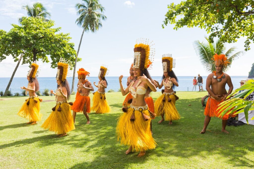 La Polynésie française possède une culture riche et vibrante. Les visiteurs peuvent découvrir la culture polynésienne à travers la danse et la musique, accompagnées de chants harmonieux et d’instruments locaux comme le ukulélé et le pahu, créant une ambiance festive et accueillante. De plus, l’artisanat local, notamment le tressage de la pandanus et la sculpture sur bois, témoigne du savoir-faire transmis de génération en génération.