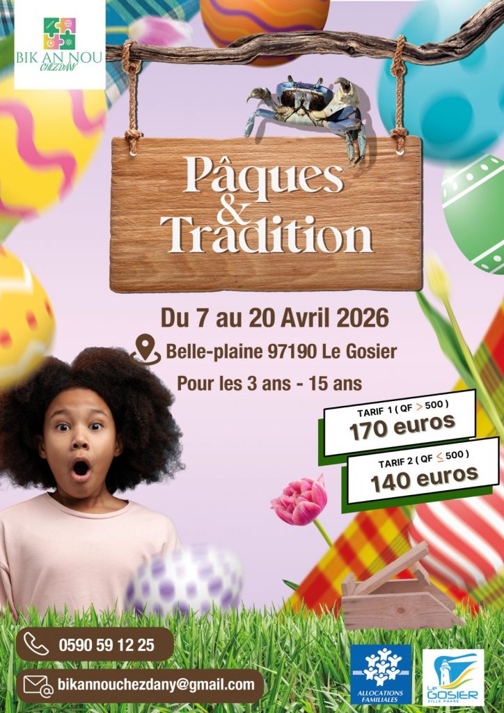 Les vacances de Pâques approchent à grands pas. Bik An Nou Chez Dany ouvre ses portes pour accueillir tes enfants au cœur de la Guadeloupe. Ce centre de loisirs situé à Belle Plaine au Gosier propose un programme riche pour la jeunesse. Les inscriptions sont désormais ouvertes pour cette période festive et éducative.